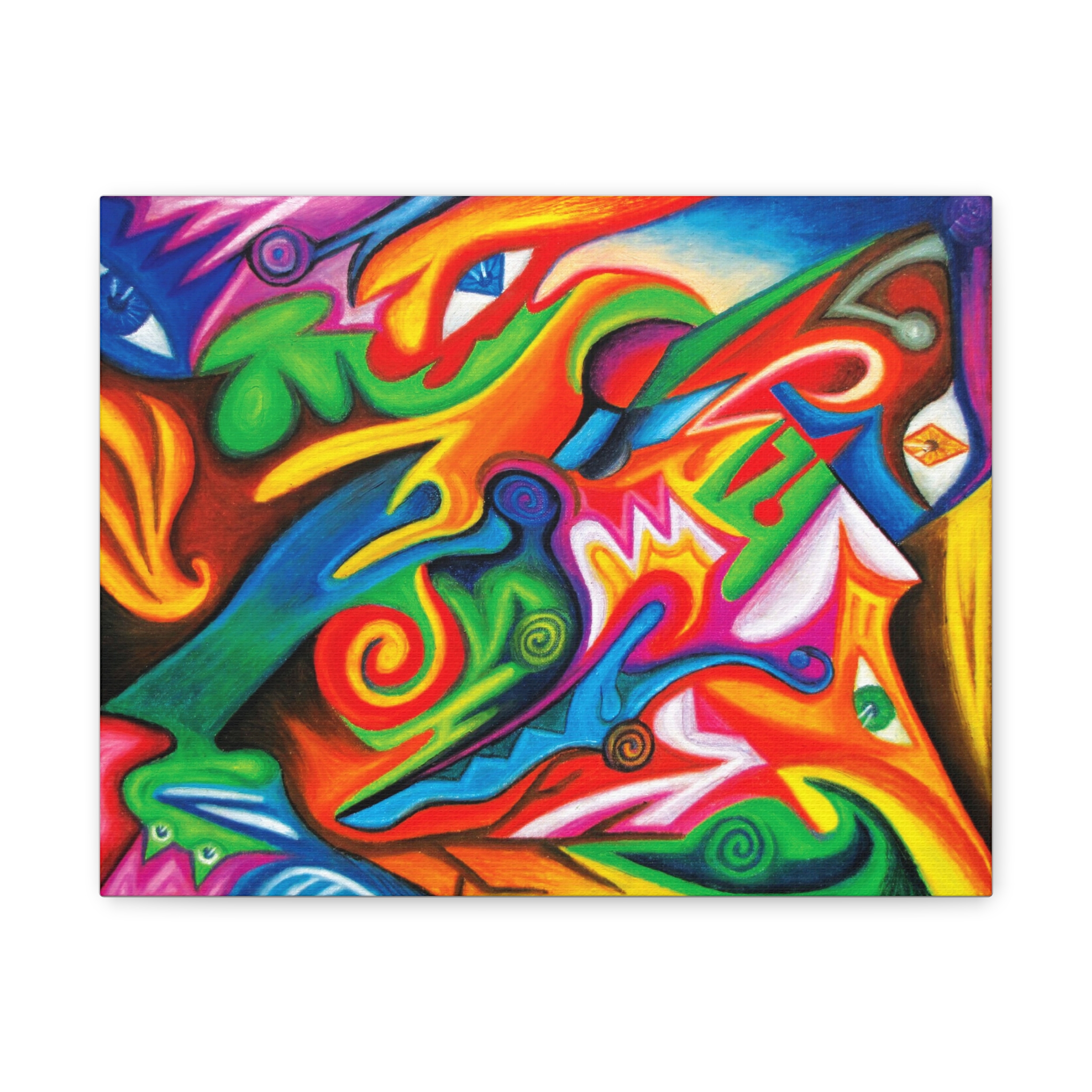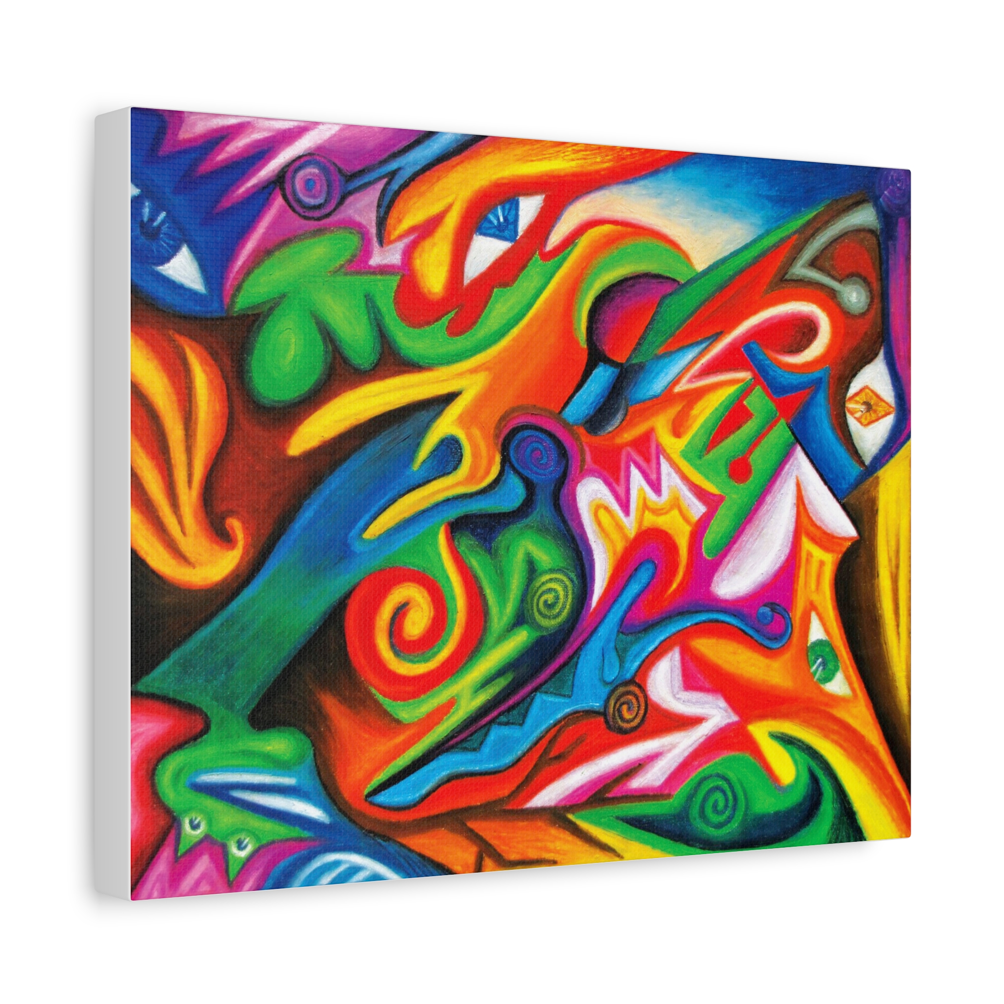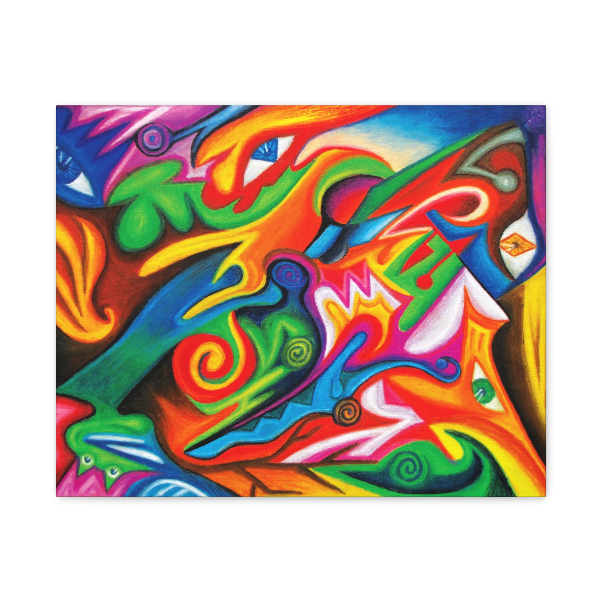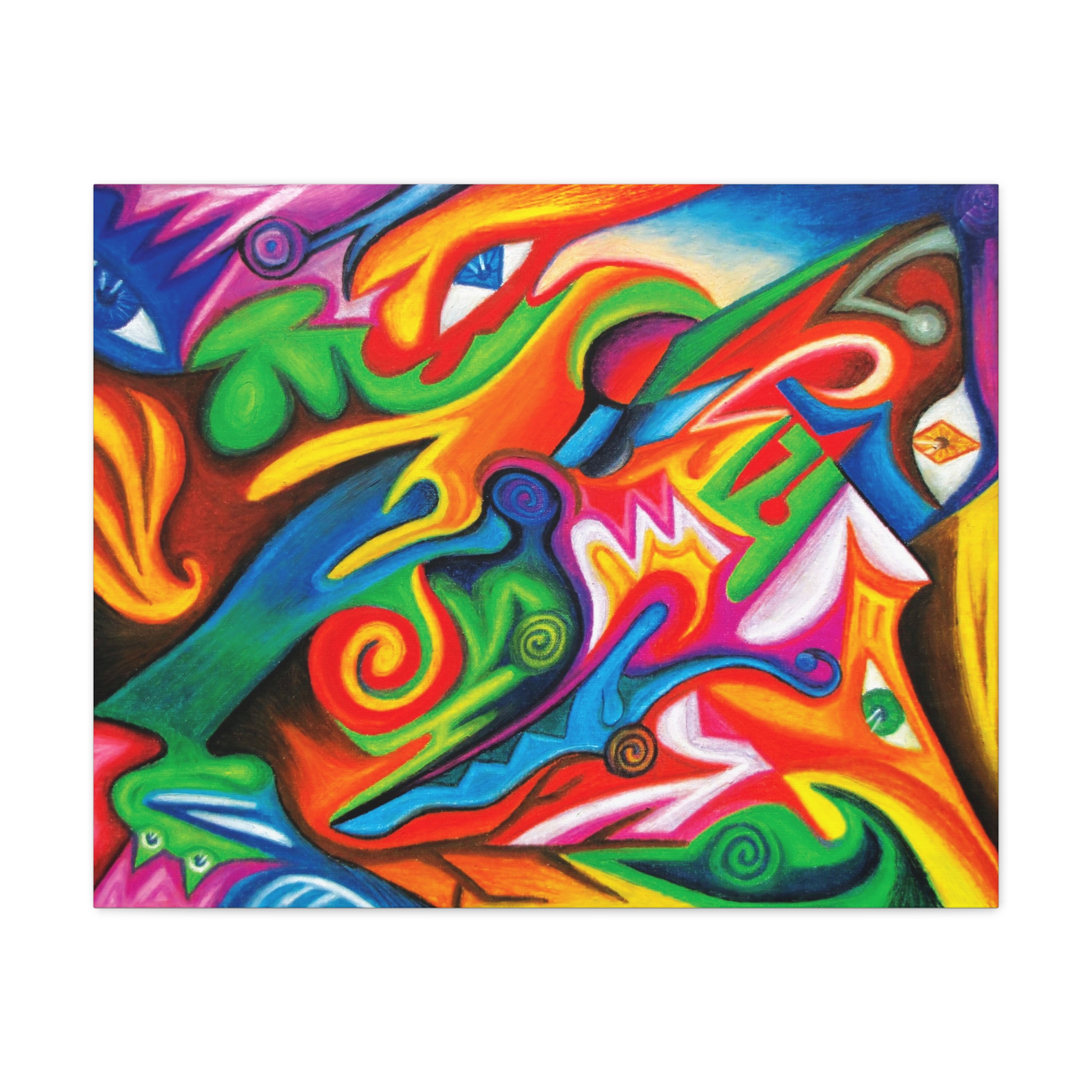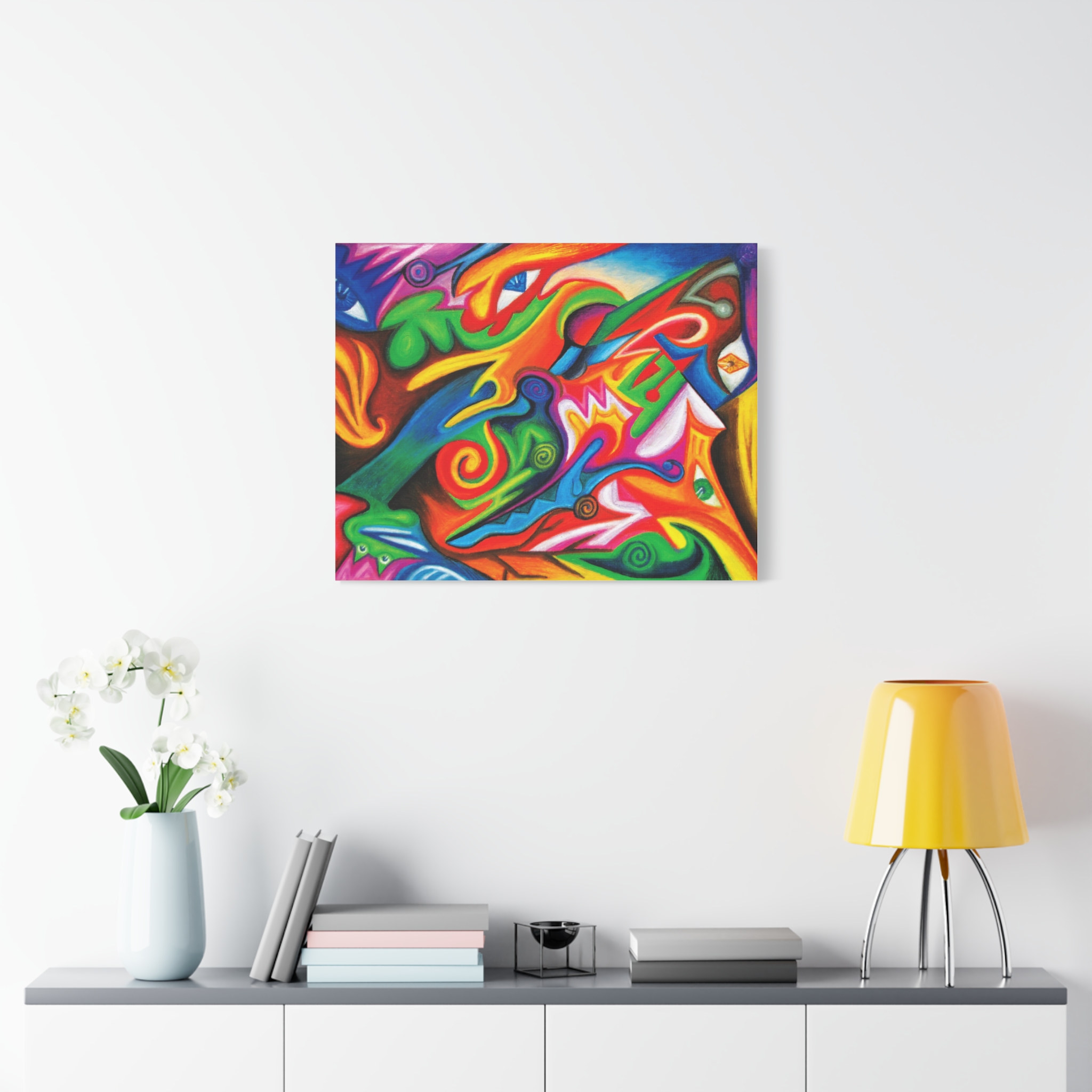 Transform your walls with this vibrant matte canvas, perfect for adding a splash of color and creativity to any room. This stunning art piece brings an energetic and lively atmosphere, making it ideal for any modern living space or artistic studio. Whether you're decorating your home, office, or studio, this canvas fits seamlessly into various settings, infusing them with an artistic flair. It’s a great gift for art lovers, creatives, or anyone looking to uplift their environment. Perfect for celebrations like birthdays, housewarmings, or any festive occasion, this canvas makes a thoughtful present. Bring joy and color to your life or share it with someone special!