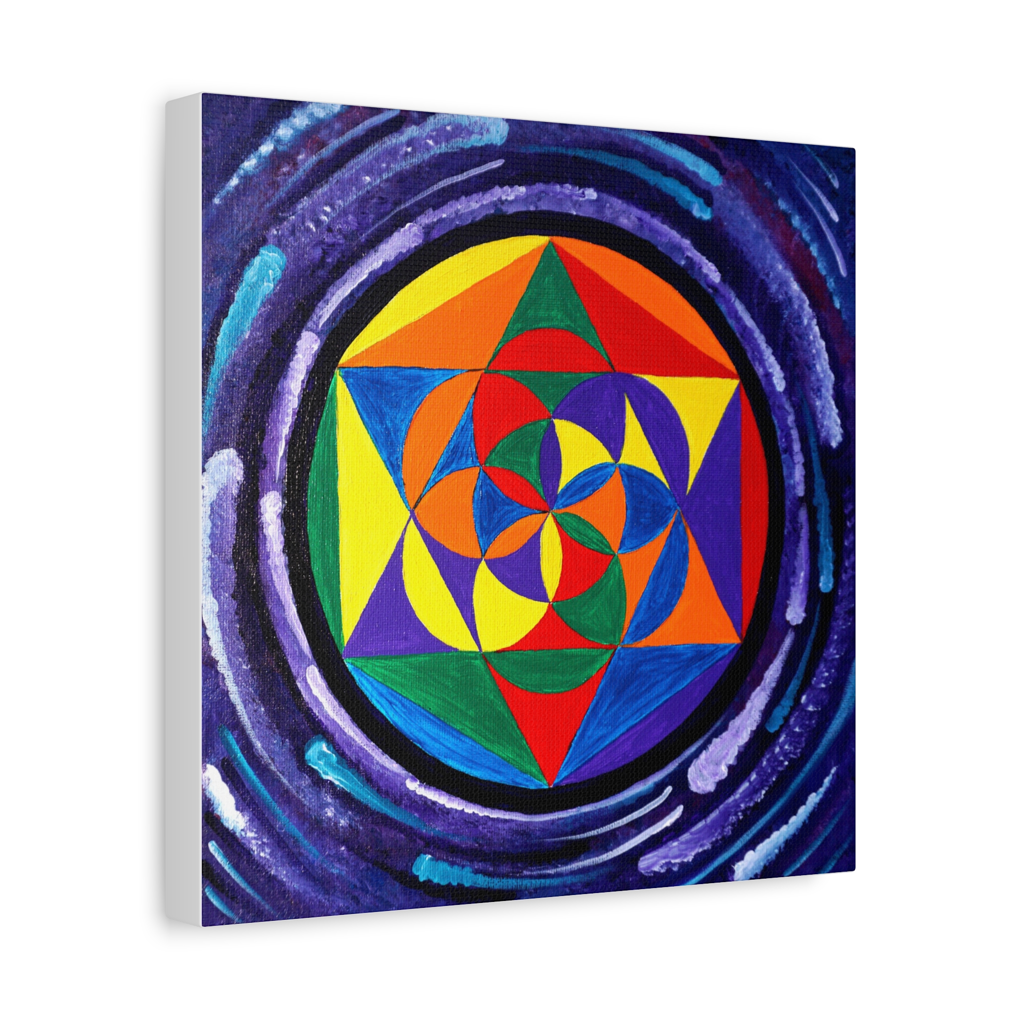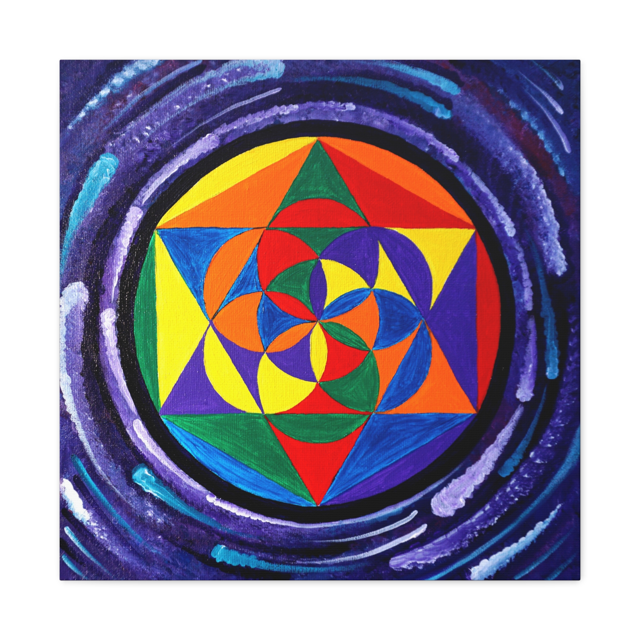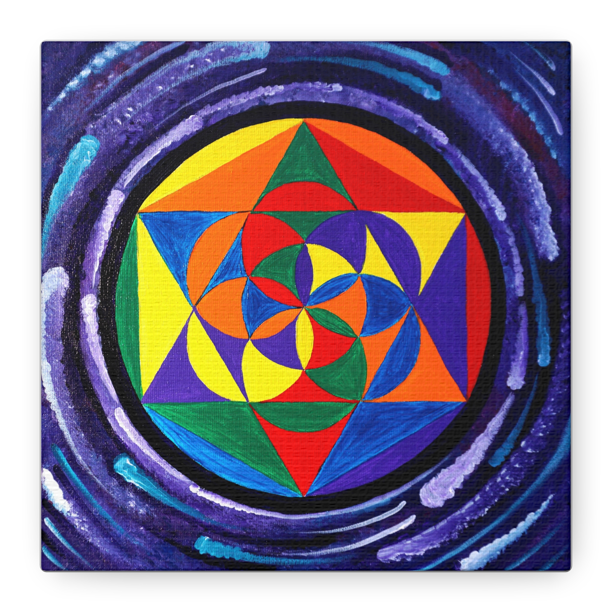 A simple seed of life I decided to create with a swirling energy around it to represent the particles of space and time. This lovely petite print will adorn any small area that needs filling your living space and make you feel connected to the building block of life!